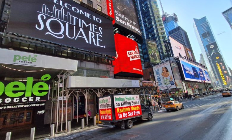 شاحنات رقمية في نيويورك تبث رسالة: «كشمير لم تُنسَ»